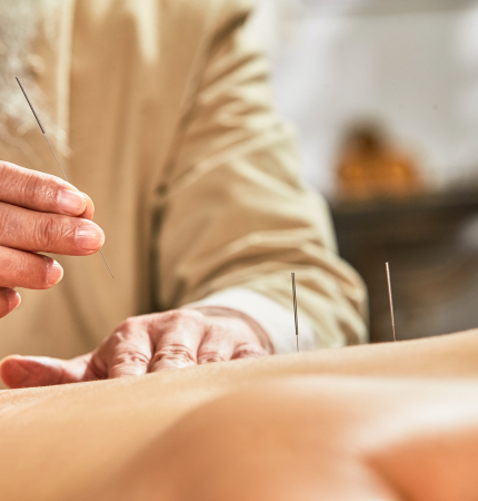 Acupuncture treatment through the stimulation of particular points on the body for healing promotion.
